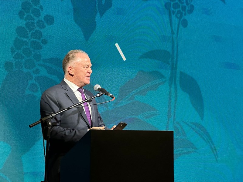 “Sou de um Estado onde o café é o produto mais importante. Com 70% das propriedades rurais especializadas no produto. Somos referência em qualidade, comprovada em concursos de café. Além da produção, também investimos em formação, pesquisa e assistência técnica. Recentemente, lançamos um Programa de Desenvolvimento de Sustentabilidade da Cafeicultura, com 35 eixos e 27 projetos, visando aumentar a produtividade e a qualidade do café. Nos preocupamos com questões de governança, ação social, recursos hídricos, tecnologia e agregação de valor para garantir a renda do produtor rural”, disse o governador.