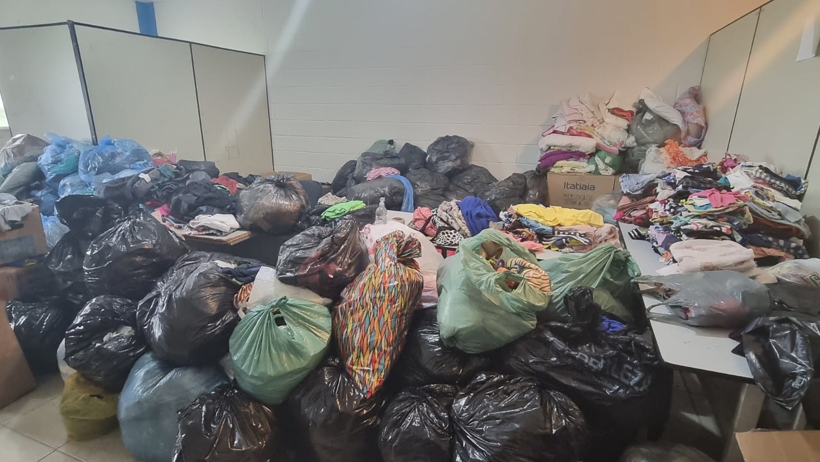 Os itens de mobiliário, que ocupam mais espaço, estão sendo armazenados em um novo galpão, construído recentemente dentro do Centro Administrativo, enquanto as salas onde funciona o Ponto de Controle é a destinação de roupas e kits diversos.