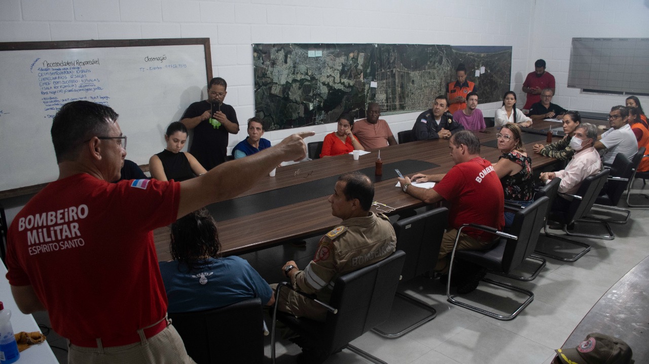 No Sistema de Comando Operacional (SCO) montado pela Prefeitura e Corpo de Bombeiros na sala de reuniões do Centro Administrativo estão sendo traçadas todas as estratégias de enfretamento dos problemas causados pelas chuvas em São Mateus. Na reunião de hoje à noite (19), coordenada pelo prefeito Daniel Santana e pelo comandante-geral do Corpo de Bombeiros do Estado do Espírito Santo, coronel Alexandre Cerqueira, foram definidas uma série de operações e ajuda humanitária em diversas localidades do Município.
