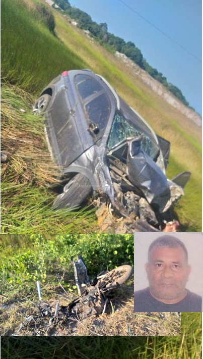 Um grave acidente entre um automóvel VW Nivus e uma motocicleta, na tarde desta quinta-feira (16/11), na estrada que dá acesso ao Nativo, em São Mateus deixou o motociclista, Adilson Amaro de Jesus, 65 anos de idade morto.