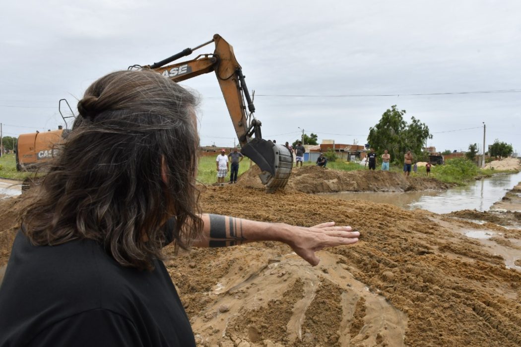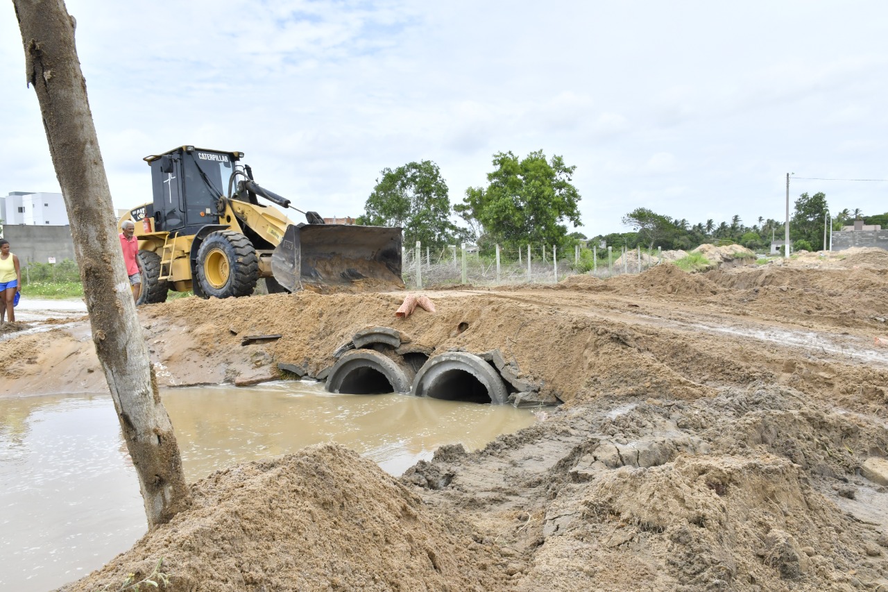 Em Guriri foram abertos canais para escoamento da água parada para o Rio Mariricu e estão sendo construídas passagens entre as ruas.